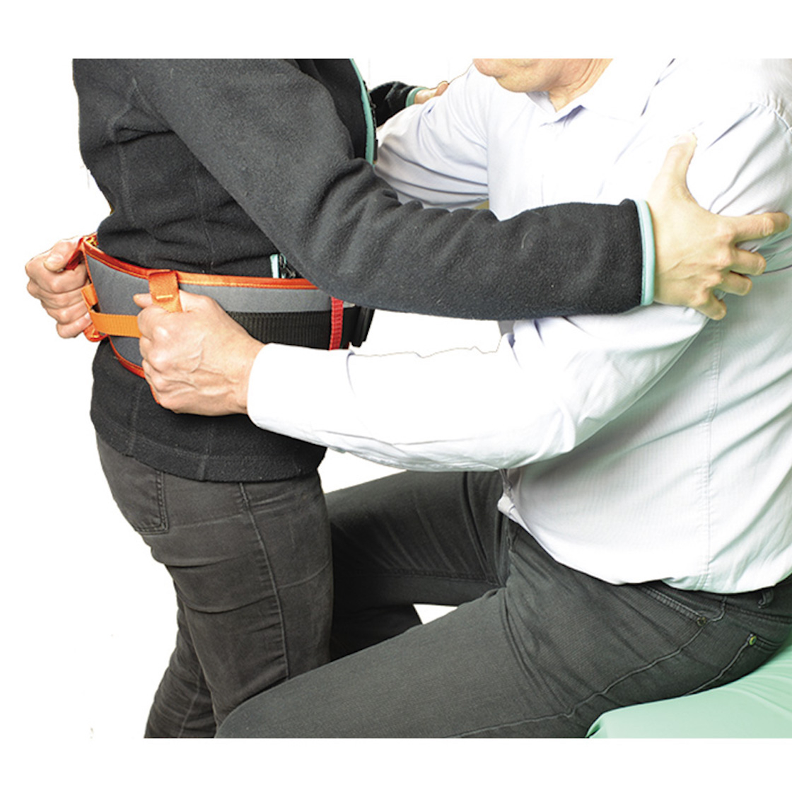La ceinture de transfert Transac permet d’avoir des prises fermes et réduit les efforts des aidants pour le relevage.