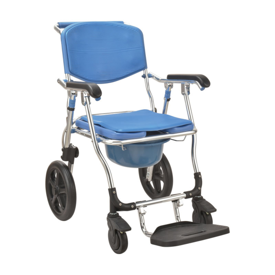 Tout d’abord, elle offre une assise confortable en mousse souple, avec ouverture en U pour faciliter l’hygiène intime. Le dossier et les accoudoirs sont également recouverts de mousse pour un appui agréable. Ensuite, son repose-pieds escamotable permet un transfert plus sécurisé et plus aisé pour l’utilisateur.