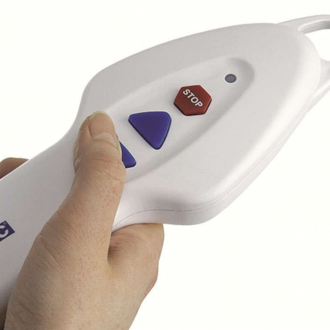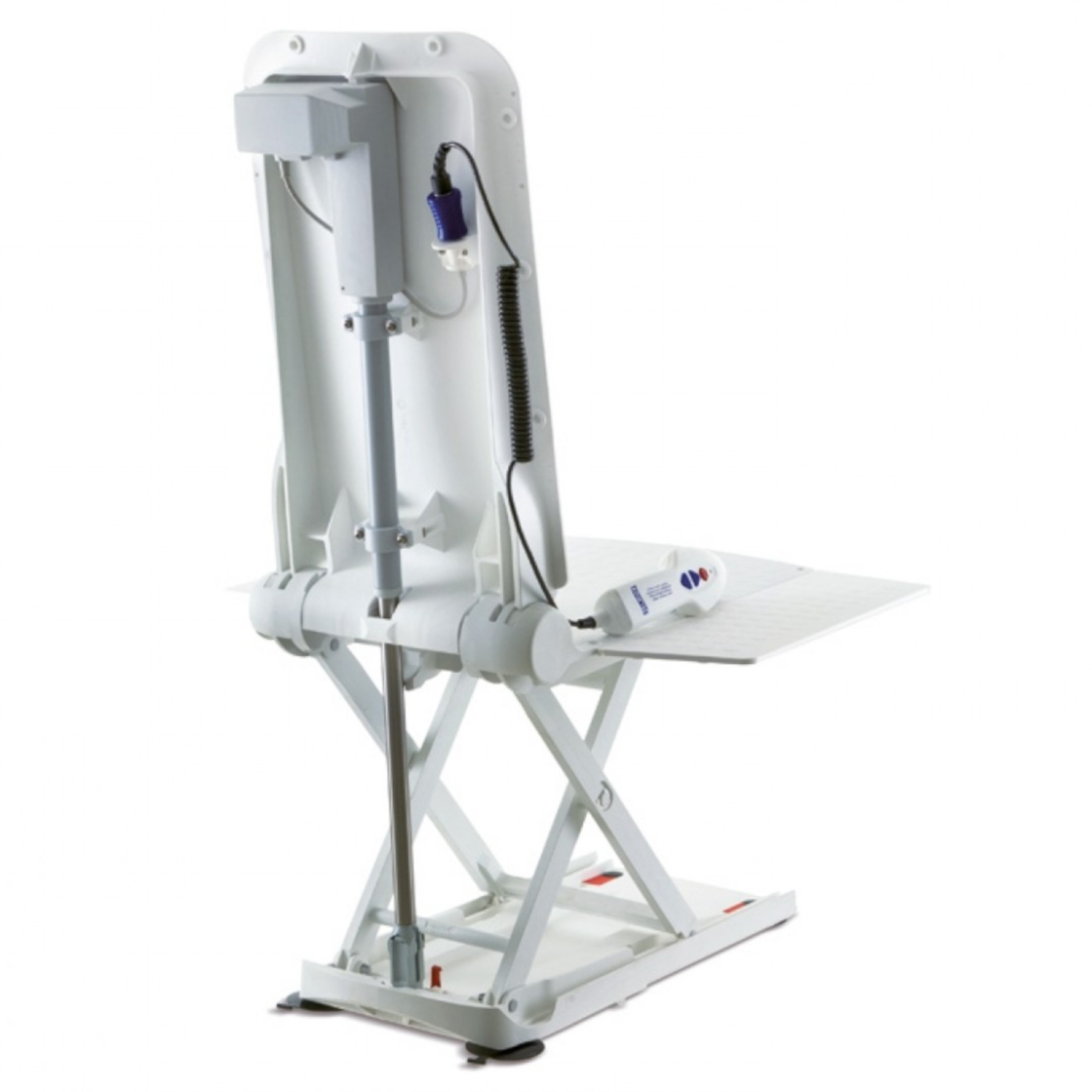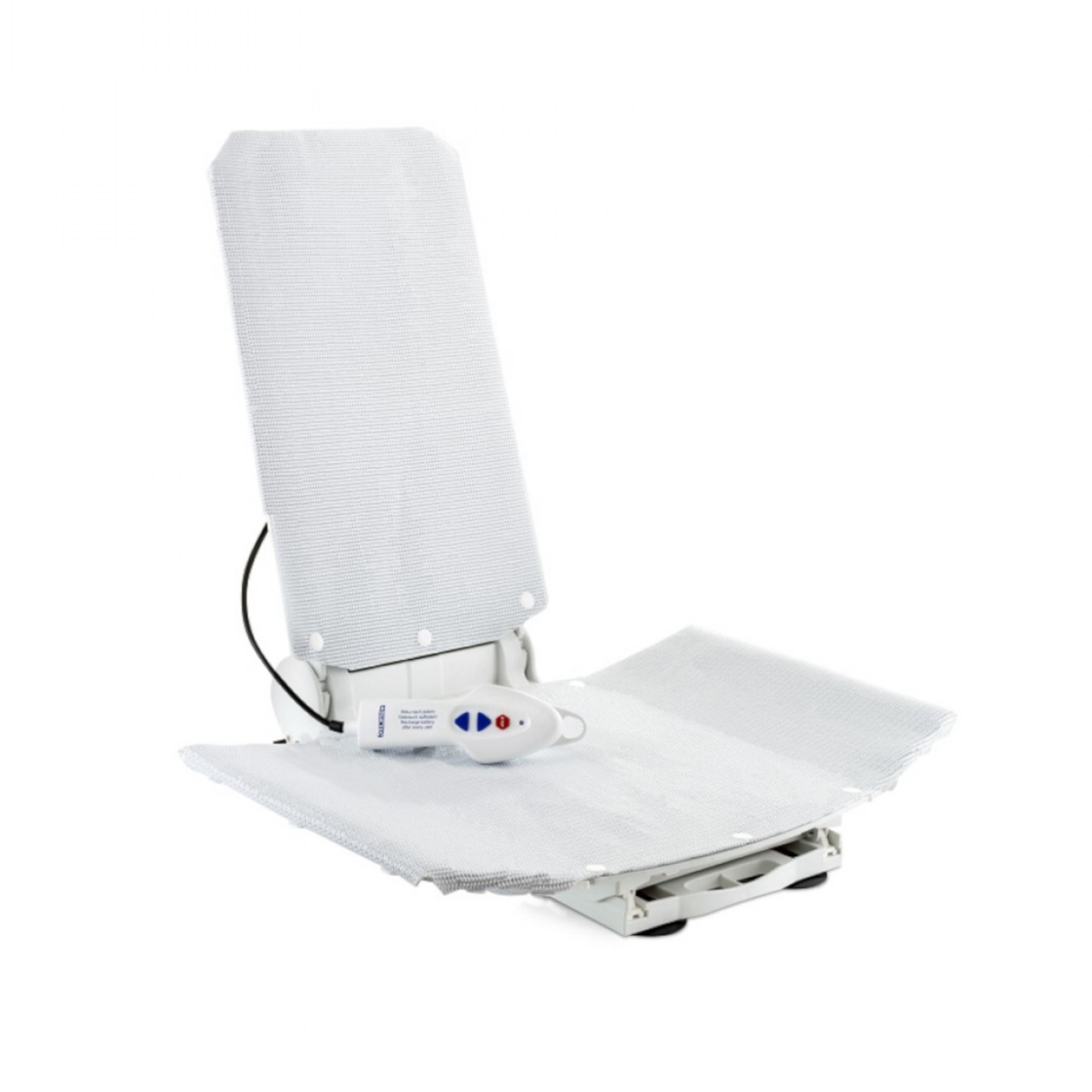 L’appareil est alimenté par une batterie intégrée à la télécommande ergonomique. Par mesure de sécurité, il est impossible de descendre si la batterie est insuffisamment chargée, garantissant ainsi que l’utilisateur puisse toujours remonter.