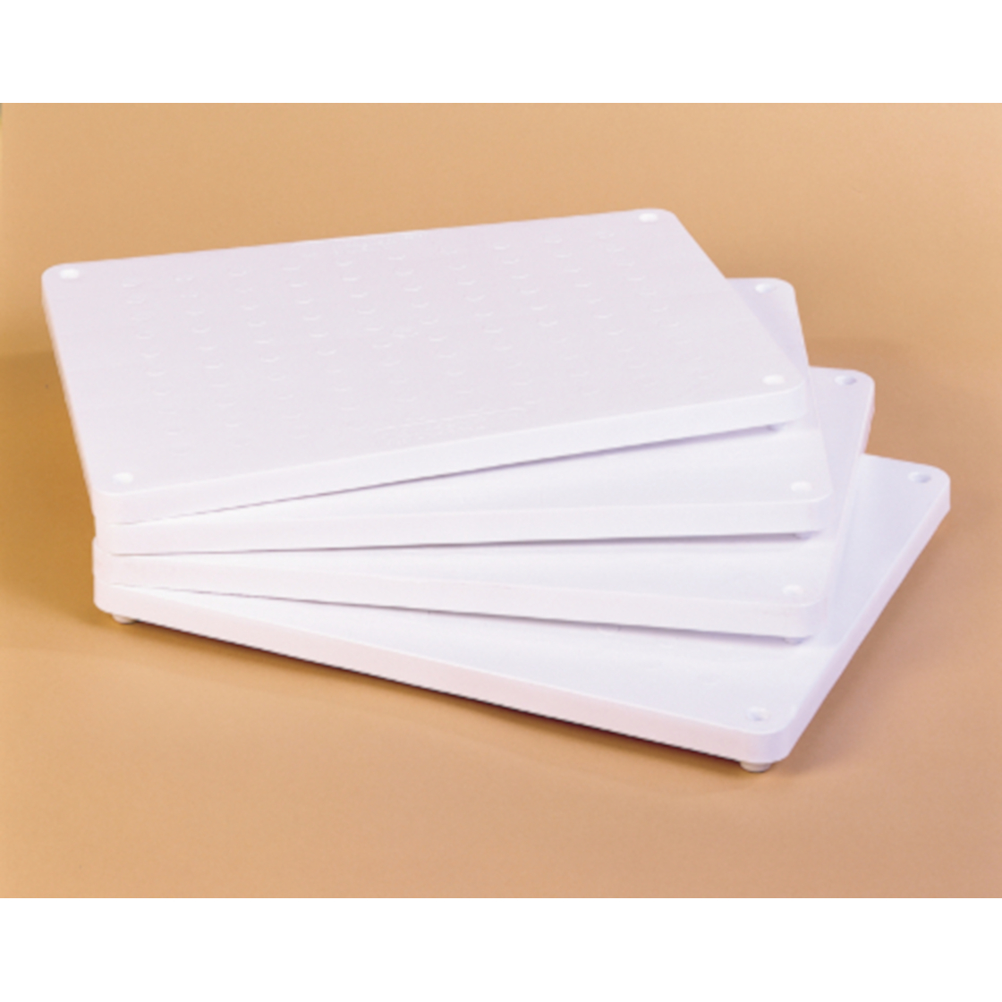 Chaque unité comprend 4 plaques de 2,5 cm d’épaisseur qui s’emboîtent solidement les unes dans les autres pour une stabilité maximale. Deux packs peuvent être combinés pour atteindre jusqu’à 20 cm de hauteur, selon votre propre évaluation des risques.